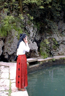 包里的手机这时响起来,是okok!这是我在网上非常尊重的一位老师,我来杭州的主要目的之一就是找他学做网页,说好还要讨论股票什么的。一直怕联系不上他,这时听到他的声音,高兴得我真不知如何是好!他很惊讶我们这么快已在灵隐,我则关心我们什么时候能够会面。我在网上还有另外一位杭州的好朋友大卫,那也是一位非常真诚的朋友,我们正在一起学习flash动画。okok说他马上就帮我去找大卫,争取晚上一起来宾馆见面。 为了电话能够听得更清楚,我是避开游人,跑到小石桥上去听电话的。珠儿后来告诉我,他们远远看着我站在小桥上打电话,那么兴高采烈,总觉得我马上就要乐极生悲,掉到桥下流水中去了。 |