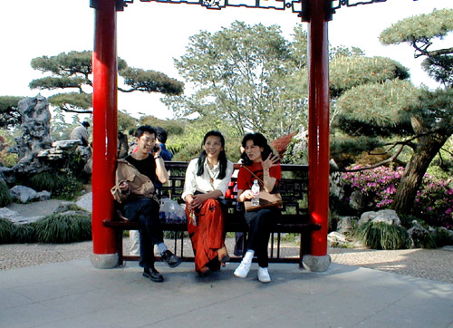 小木船是那种人工摇橹式的,船工只有一个人,手上忙着摇橹,同时用脚掌舵,看着很累的样子。一上船我就跟我们船的船工商量,待会儿让我划一会儿,他歇歇。他非常骄傲地笑一笑,说我干不了他的活儿,肯定会原地打转转。我告诉他,去张家界的时候曾经乘船渡过一条河,当时就是我摇的橹——很快就掌握了啊!再说又没有什么急事,转圈也是转在西湖上,怕什么?!他说那行!ZB于是开始起哄,说到时候让我和珠儿一人一船,比赛看谁划得快。 湖心三岛,我们最先登上的是“阮墩环碧”。刚听这名字时觉得怪怪的,待阿钢和okok讲了才知道:其实这岛原本是不存在的,清浙江巡抚阮元在任时主持西湖挖淤,才用挖出的淤泥堆积起来。起初它很小,所以称“阮墩”,又因为四周是水,才有了“环碧”的补充。 说起阮元的名字,杭州人好象都十分熟悉,这让我不由得有些感慨。百姓其实真的很“念好”啊,为官一方,做这么小小的一件事,居然也能这样久久地被人们传颂!脚下的泥土湿湿的,润润的,没有一丝北方那般的浮尘躁土,我好象又看到当初刚刚被翻出水面的湖淤…… 小岛很美,花团锦蔟、树密竹疏。岛上的宅子装修很新,红色的廊柱在绿树掩映中十分醒目。宅前一座竹木台,孤零零立在那里很显眼,阿钢告诉我们,传说中那是当年阮家小姐抛彩球选婿的地方。这传说让ZB十分亢奋。昨天他听到杭州一景“柳浪闻莺”就已经激动半天了,一直挂在嘴上念叨,直念得那么诗意的名字在大家心里都变了味儿,好象成了“红灯区”的代名词。今天他又没完没了地念上了“阮小姐”,阿钢毫不客气告诉他说,那阮小姐每天晚上抛一次绣球,抛了都不算的,连洞房都没有!ZB被噎得结结巴巴,一口气说出一连串儿音阶高低各不相同的“那、那、那、那、那……” 绕到岛后,树荫完全遮敝了阳光,一片阴凉。几位老老小小正在水边用纱网打捞寸把长的小虾。我们围过去看他们的网,网里还真是收获颇丰。okok说,这虾拿回去,炸炸炒炒,就可以弄得“小菜吃吃,小酒喝喝”,落一个舒心安逸了。他说这就是典型的杭州人的生活,也正是他们的心态——“偏安”的历史遗痕是那样余韵久远。我们想到这两天在湖畔、在街上看到的杭州人,真的就是这样。他们人人平和,时时善意,随处让人感觉到一种“小富即安”的氛围。无贪无欲,无损无争,这也是一种幸福吧。 |