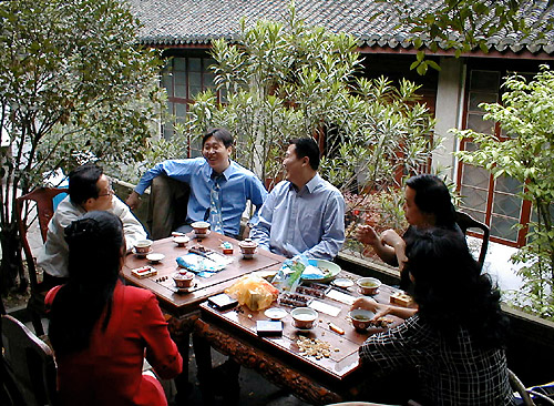 趁大家忙着拼桌斟茶的功夫,我去柜台前买了一堆小零食抱回来。请okok吃“九制杨梅”,他笑一笑显得不屑,说新鲜杨梅马上就要上市了。新鲜的杨梅,新鲜的茶叶,处处新鲜的富有的江南! 就这样悠然随意地品着茶,谈起这次美好的杭州之行。我说这次我最大的遗憾就是没有看到钱塘江潮!“要不然明天咱们去看吧?!”大家都说不行,根本来不及了。我非常丧气。阿钢说你们真的安排再来一次吧,不用那么长时间,专门去看了钱塘潮就走嘛!秋天!每年最大的潮汛是在八月十五,那时正好桂花也开了,多好!我们都说再来一趟可能很难。不过我心里觉得我可能无论如何都会再去一次的,哪怕只是为了钱塘潮。 阿钢说起,前年他主持拍摄了一部纪录片,是写浙江改革开放历程的,片头就用了钱塘大潮的景头。为了拍那个镜头,除了两岸跟着潮头跑的摄影车,还动用了直升机呢——其实在江上看潮不如看那片子更清楚。但他说,那部片子后来没能播放。我们问为什么,他说,你们想想看,前年出了什么事?大家一时反应不过来。“发大水呀!”他说,“全国上下都在抗洪,你歌颂大潮?大家看着不别扭吗?那岂不是开玩笑?” 他又说:那部片子是他起的名字,就叫《潮起浙江》。我说这名字有点儿问题,容易引起歧义和争议。他问怎么讲。我说:潮起?首先安徽人民就不干了——“潮起”是从农村改革而“起”,农村改革明明是从安徽开始的,人家完全有理由说“潮起安徽”啊。阿钢说我理解得不对,他只是站在浙江说浙江,并没有指全国。他理直气壮地问我:“再说,安徽哪有什么大潮?!”阿钢是武汉人,在浙江只是工作,他显然已经把浙江当作又一故乡了。okok也不是本地人,但他任何时候说起杭州也象是在说自己的家。原来杭州的美丽不只属于杭州! 在茶香中清闲到天色向晚,我们离开虎跑,驱车去阿钢的大本营,参观了“他的”网站。这是我第一次见识到一个正规的网站基地。阿钢为我们演示了他现在正用着的编辑、排版、上传和页面更新软件,还介绍了机房设备、大致成本。okok和我们一起去的,他给我们讲了虚拟空间等基本知识。对我来说,这一切都是新鲜的。 临到晚饭时间,阿钢和okok都回家了,南飞也动身回了上海,所以晚饭只剩下我们“北京旅游团”四人。okok和大卫都说晚上还会来宾馆,到时电话联系。我真不想让他们天天这样跑来跑去,但他们都说不远,很方便。饭吃到一半,我忽然发现手机没电了,怕他们电话找不到我,匆匆扒完饭就跑回宾馆去等他们。幸亏我及时赶回去,我到了没多久,他们也到了。 今晚没有去看王爷他们发布照片新闻,okok、大卫和我,三个网友整整聊了一晚。从网页制做中我的问题,一直谈到上网的经历,还谈到华知论坛和那里的朋友们,热热闹闹一直说到半夜他们才回去。 我冲了澡又抱着机器靠在床头准备开始干活儿,结果今天比昨天睡着还要干脆!又是什么也没干成。 |