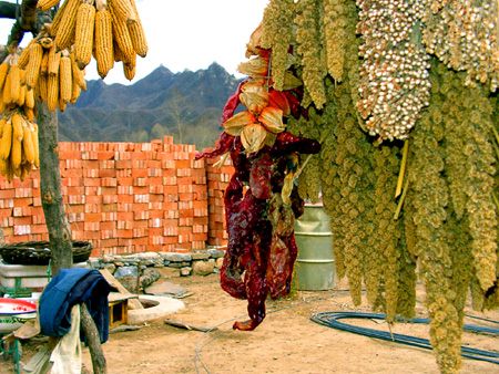 | 在土炕上发现一台很大的望远镜,趁房东忙着做饭的功夫,风絮去外面细观远景,我抽空又拍了几张农家小院。这是从“赵氏山居”看箭扣长城。瞧这谷子、玉米……中午饭就吃的小米粥、贴饼子、赵嫂亲手制的咸菜。我对赵嫂说,我要吃炒鸡蛋!她高高兴兴去炒了一盘来。这可不是养鸡场人工催出来的那种蛋!板说在东北农村,有鸡权自由的鸡们被称为“遛达鸡”,那我们今天吃的叫“遛达蛋”? | ![]() |