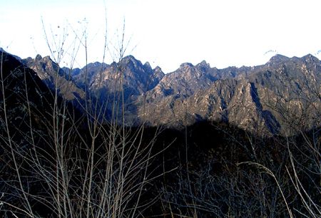 走到这里才想起,还没有给风絮拍到与长城合影的照片。都是弯道,不知好不好停车。板说没事,你们去拍吧,大不了我一直按着喇叭!其实也没有弄到那么放肆制造躁音的地步,只不过这几张拍得都比较匆忙。天气已经发暗,能拍得这样,我很满意了。不知风絮满意不满意? 板说对面山坡上的好象是棵“消息树”。他说,这张照片就叫《小八路和消息树》吧。 |