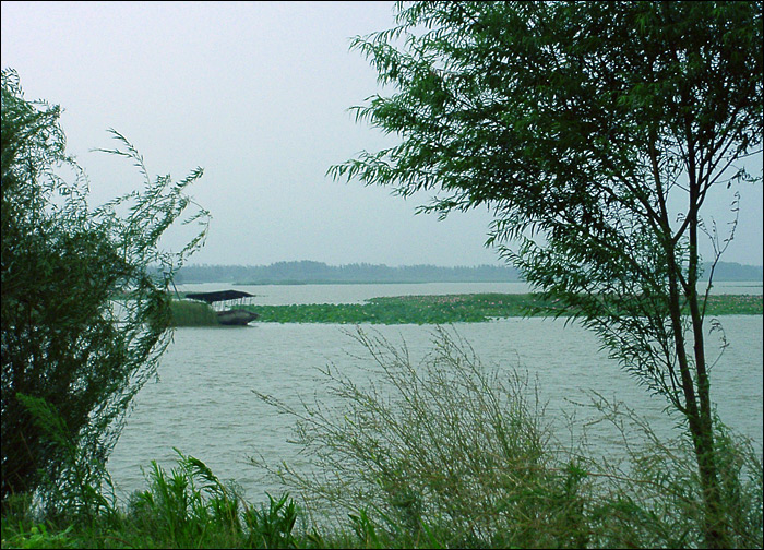 雨又下大了,不能再下车拍片,我只能躲在车里,放下车窗拍几只偶尔望到的小船,还有那些随处可见的平淡无奇的绿洲。 ![]() |