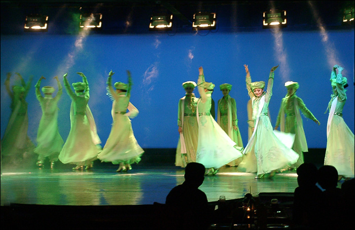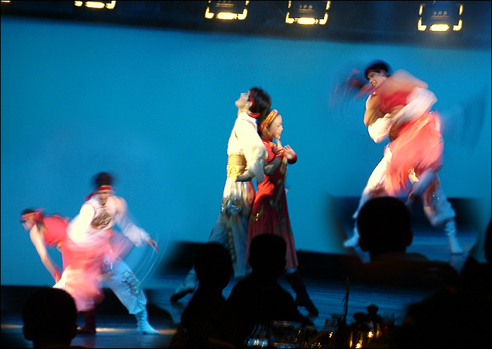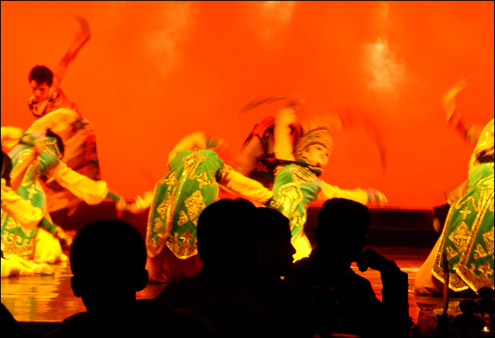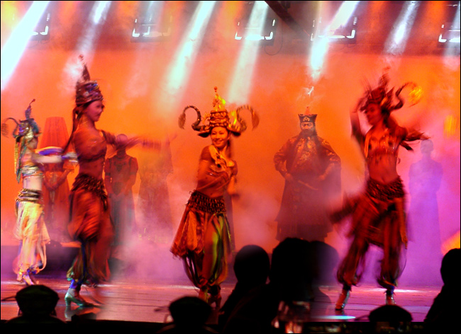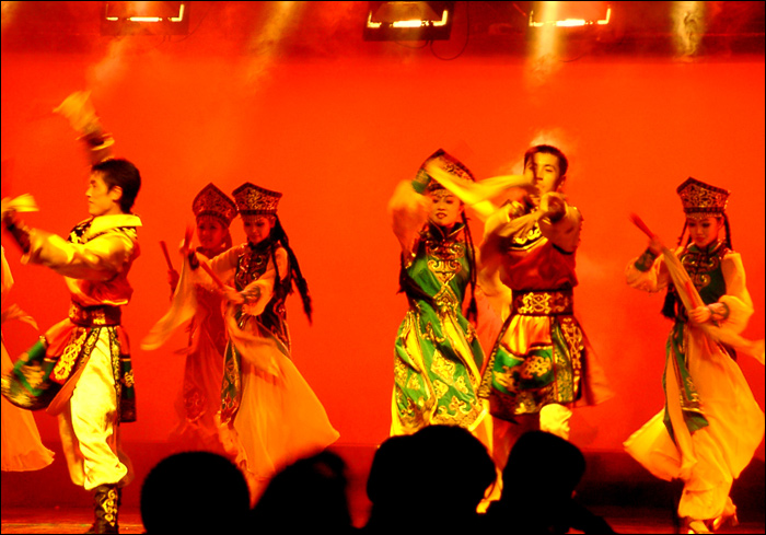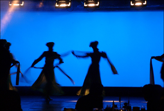 很长时间以来深居简出,孤陋寡闻,腾格里塔拉——我竟然一直不知道北京新开了这么个地方,并且已有一段时间了。中、西式自助餐外加蒙族自助餐饮,席间伴有五彩缤纷的蒙族歌舞。价格不低,却还必须提前订座!来来往往很多中年人,不知其中有多少当年内蒙知青。 我是带着相机去的,品尝了清醇的草原酸奶、奶茶、奶豆腐、蒙族酸菜粉丝,还想尝试一下舞台摄影。拍摄第一张照片时即遭拦截,服务生告知:这里禁止拍照。以下所有照片只好都是“偷拍”的了,不能离席选择角度,面前服务员、宾客穿流不息,还要鬼头鬼脑随时提防干涉,拍得真是非常艰苦。只是一次尝试吧。 文化餐饮,商业味道必不可免,但是除了挂在商业前面的文化招牌之外,总还是有隐含在商业后面的另外一层文化。它吸引我们前来。 |