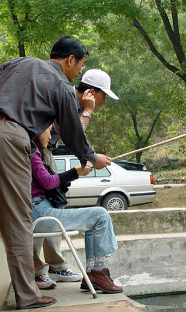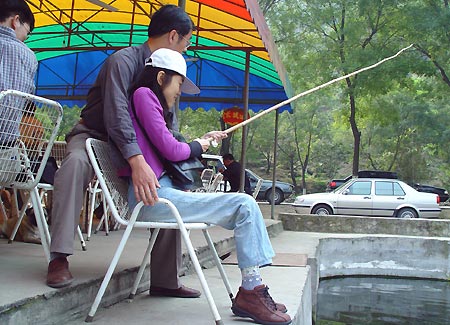 这里有鱼塘,我们都主张相月自己亲手钓条鱼尝尝。这个主意让相月很开心。LX说:“去那边!鱼都在那边呢!” 小山东把相月搬来搬去都没拍好,倒是拍成了LX这张。这家伙也正闹腰腿疼,今天一路开车都快坐不住,年近五十的老腰了,也不容易吧。 |