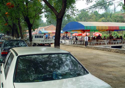 | 快到慕田裕长城的时候,时间也临近中午了,我们就在路边这家“鱼师傅”饭店停车吃饭。小山东本来主张先上长城,别急着吃饭,但大家认为最该先吃饭的就是他了——相月上车下车上山下山,都要靠他背着抱着。这也是一个让人感慨不尽的年轻人。 | ![]() |
