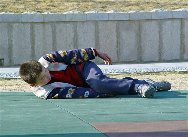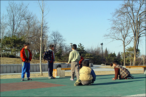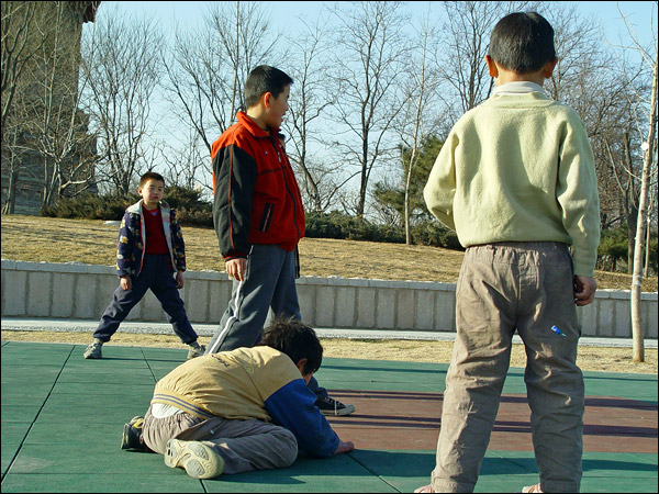 ↓ 大家全都服从规则。输的人趴在地上,接受“踢PP”。有点儿暴力象征。![]() |