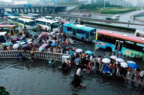 跟着大风而来的,是又一轮暴雨!坐在车上看着天,想起下乡时听老乡说过:“亮一亮,下一丈”。刚才的放亮,可能正是预示着后面这“一丈”?我还以为会风吹云散呢!忽然想到这也许还是刚才那一阵雨,我被它追着连浇了两次! 错过刚才雨小的时候没进家,现在根本出不了车了,在车上一坐就坐了半个多小时。天象漏了一样,狂风大雨,没完没了了。这可真象我们做股票,大跌有反弹不走,侥悻着总想等待再弹高一点,结果抱着股票越跌越深…… 股民“能走不走抱着股票越跌越深”的最后结果,往往是在低位忽然果敢起来,下决心砍仓“割肉”。今天终于等到失去耐心的时候,我决定弃车冒雨冲进楼门。 其实停车的地方到楼门口一共没有多远,可是打开车门、顶着狂风撑开雨伞、回身再抱起狼狼……尽管事先做好了充份准备,包括计划好了每一动作的先后顺序,力求达到最高效率,但这一刻还是全湿了。头发终于完蛋。当然最完蛋的还是鞋,院子里已经是没脚脖子那么深的水,狂风吹过,挺平的砖地上居然也“浪打浪”了…… 进门收拾完了抽烟喘气儿。妈妈还紧闭门窗开着空调,说是怕“潲雨”,只好到阳台上去抽烟。窗外就是护城河,妮妮告诉我:“中午这河还干得见底儿呢,这会儿都快漫出来了”。她说雨太大了,而我猜是雨大兼上游水库放水。我认定上游水库这会儿肯定放水了。 后来转移到厅里去抽烟,向老弟汇报了刚才一路的艰辛。他说我当时打算靠边停车很对,但是并线困难就不强行并线也对……我在厅里开了窗缝,吹进来的风又硬又冷。妈妈出来看看我们,惊呼太冷了,赶快跑回房间去关空调加衣服。这场雨折腾得大家都有点儿神神经经。 |