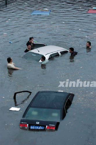 更大的灾难是在回程。 七点钟吃完晚饭早早准备回家。这几天正在看北京台重播的《天下第一楼》,今晚两集,八点五分开始,我七点钟上路,算着时间应该绰绰有余。这时雨还在下,已经不是“暴雨”了,但仍算“大雨”。 出门上车走护城河边,首先要从安定门立交桥桥洞下经过。桥下积水很深,路上没车,我不知道这个水深能不能过。减了速努力回忆平时走这里时是什么坡度,想作一个判断。正犹豫间,车身猛然一顷!我心里大骂一声TMD,知道完了。 下车去看,见一只排水井敞开井盖在加紧排水,井盖扔在一边,附近没作任何警示标记。当时水那么深,不到近前根本看不到那里是一处陷阱!我的左前轮正好掉进井里(注:不是右图,右图是另外的。) |