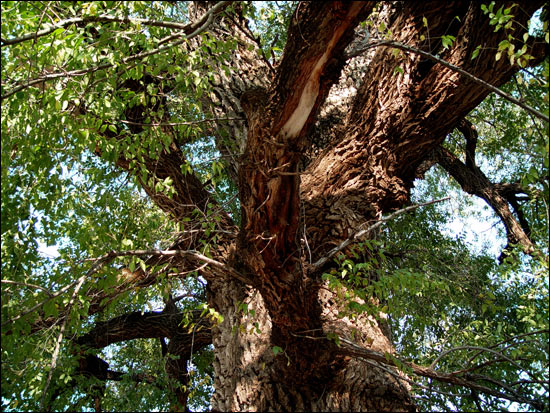 | 饭钱一共45元,饭后祖孙三代送我们到大门外。两个男孩子还很小,白河峡谷的男孩子,将来会不会很厉害? 这个村叫长寿村,村口这棵老树叫长寿树。就在侏罗纪时代的路边上,好记。 |