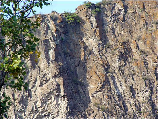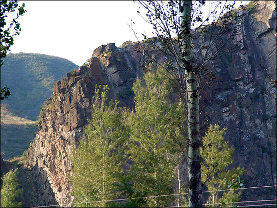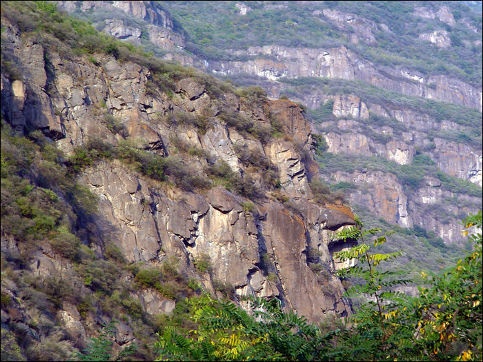 | 再上路的时候,阳光斜斜地映在远近岩壁上,已经开始有夕照的味道。又走了很久,感觉象是就要走出峡谷了,路两旁的山峰却陡然高了起来,举目四望,这一带的山崖几乎全部都是沉积层的架式了。所谓“1.4亿年前后形成的千家岩火山沉积盆地”,那个侏罗纪,不会就是说的这里吧?! 峡谷开始弯来弯去地在这些山崖之间穿行。车行至背阴的深谷间,感觉天色立即转暗,很快象要入夜似的,但是一转眼忽然就又回到夕阳的余辉下!眼前到处都是陡直的峭壁,刀削般的断层落差很高,比下面这张照片上要险峻得多。垂直的断壁上嵌刻着横向的断层,横向的断层随山势向远方延伸……壮观啊!可惜光线太难把握,弯道又太多,坐都坐不稳,我没有再拍照了。而老熊开着车一直东张西望,他好象准备跳崖,正反复比较着从哪里跳下来可以摔得更扁…… 白河峡谷就这样给我们留下了最后一个惊叹! ![]() 再后来,路边的山势逐渐平缓,地表覆盖层逐渐增厚,悬崖峭壁逐渐缩降为通常的土山包,公路也就渐渐抻直了。我问老熊:这回是真的出来了吧?他说其实还没有,其实这会儿仍在峡谷中,只不过峡谷已经变得很宽,两侧山峰退得很远,让人感觉不到峡谷的意味了。遥望远方,夕阳下果然仍有象刚才那样的峭壁巍然耸立。 老熊告诉我们,白河峡谷真正的尽头是汤河口。 汤河口是一处三叉路口,左转可以去“喇叭沟门儿”,右转通往“四海”,直行则指向云蒙山(老熊说直行也能到四海)。我们来时是从四海过来的,但回去不能再走那里了——走那里就意味着要走八达岭高速,假日期间,八达岭高速是堵车重点,我们前天从蟒山返回时刚刚见识过。今天我们要走云蒙山回去。 到达汤河口之前,我们最后休息了一次。再上路的时候是老熊催着我们走的,他说后面还有几十公里路呢,天马上就要黑了,我们怎么也得在天黑之前翻过云蒙山去! |
