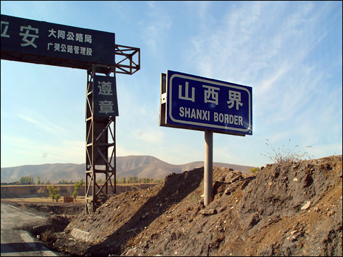 趁我下车拍小五台的时候,老熊终于痛下决心摘掉了里程表。我说:“摘就摘了吧,要不开到原平,咱们可能都已经疯了。”他说:“不疯了也得聋了。” 我的相机也差不多在这个时候彻底歇菜。车过蔚县到达广灵之前正式进入山西界,我在这里拍下了这个对我来说意味深长的界牌。再多一张都不能拍——第二个存储卡也完全不能用了。 里程表不叫唤了,总算安静了。相机也完戏了,总算消停了。我发现我就不能过省界,哪个省都不行! |