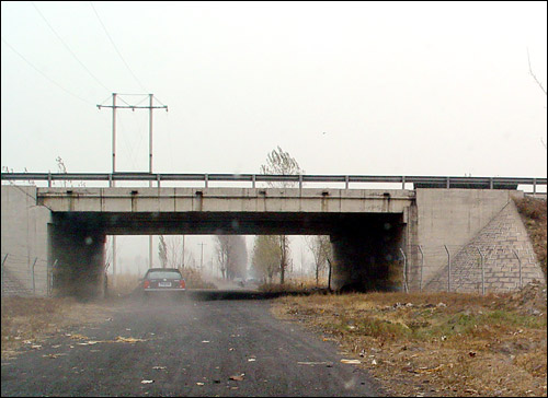 刚一出城就看到这个桥洞,我说:“我在的时候还没有这个”,老熊说:“你那会儿当然没有了,这就是大运高速啊!大运高速才建了几年哪!”原来大运高速是这么近地擦着我们村边过去的! |
