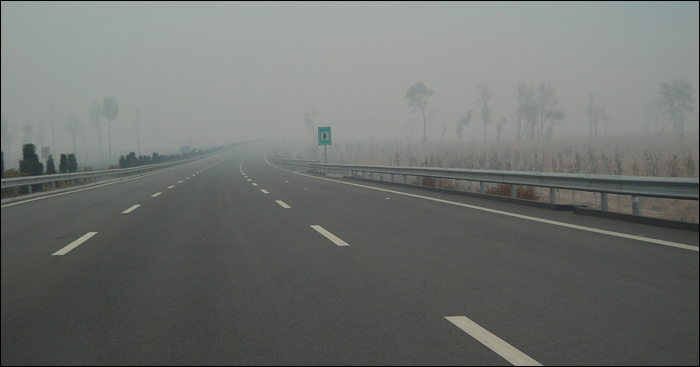 不知是大雾散去,还是我们跑得快冲出了大雾笼罩的地区,中午前后,又开始看到阳光了。