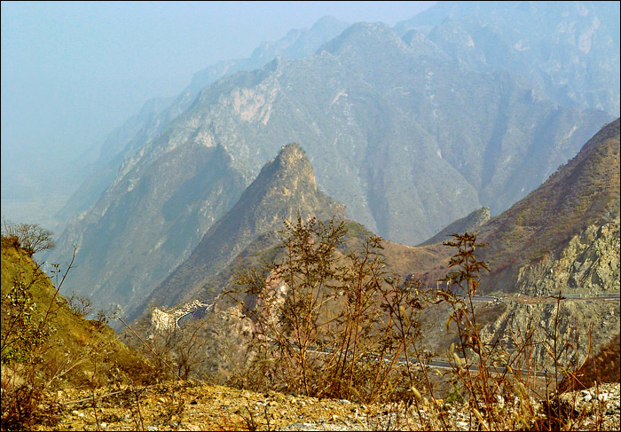 再往前走,108国道又开始爬山,那是近道,但坡度很陡,重载的大车不许走,它们都从山脚下绕行省道去了。我们在山上停车休息,随便吃了点儿随车带来的食品算是午饭。老熊趁这会儿在山顶上转来转去,换各种角度张望山下公路上排着的车队。我说:“可能排出去好几十公里了。”他说:“可不是么,这些车今晚看来是非在山上过夜不可了。”我说:“一动都不动啊,恐怕过夜还不只一夜。”