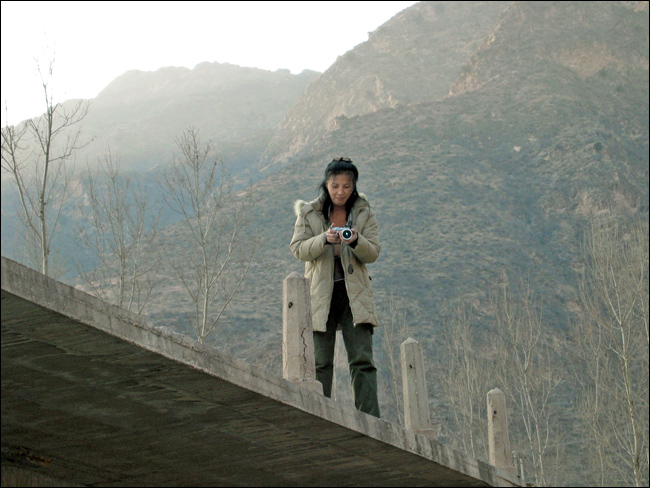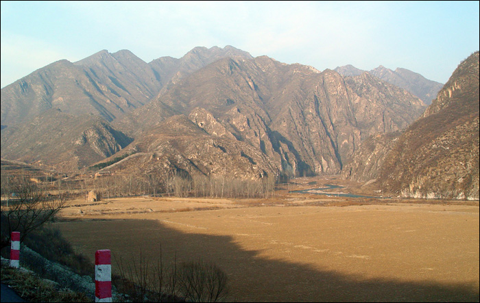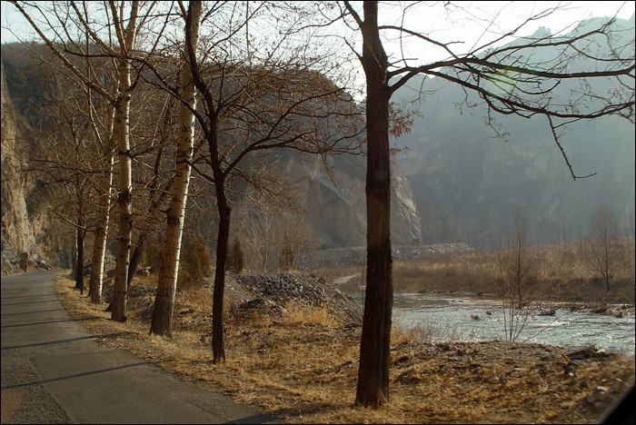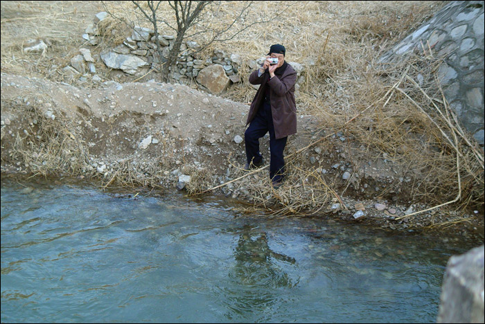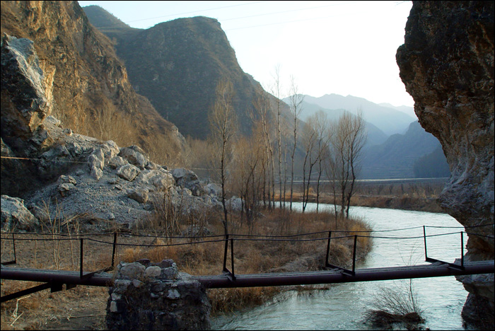 记不清为什么拐进这条岔道,来到这个“上奶山村”。白河从这里流过,群山环抱,夕阳斜照,小桥流水,一片寂静。这个镜头背后有勇敢的白河鸭在冰冷刺骨的河水中嬉戏,那边还有很开阔的河滩地。在这里遇到一个村姑MM,她邀我们今晚去她家住宿。如果只是老熊和宇鹏的话,也许他们就跟着MM走了。如果这是夏天的话,可能我也跟着MM走了。但是现在冬天,可以感觉到这里气温非常低,估计太冷了晚上也看不成什么星星,所以我们还是没有住下,只是留下了又一个美丽的印象。