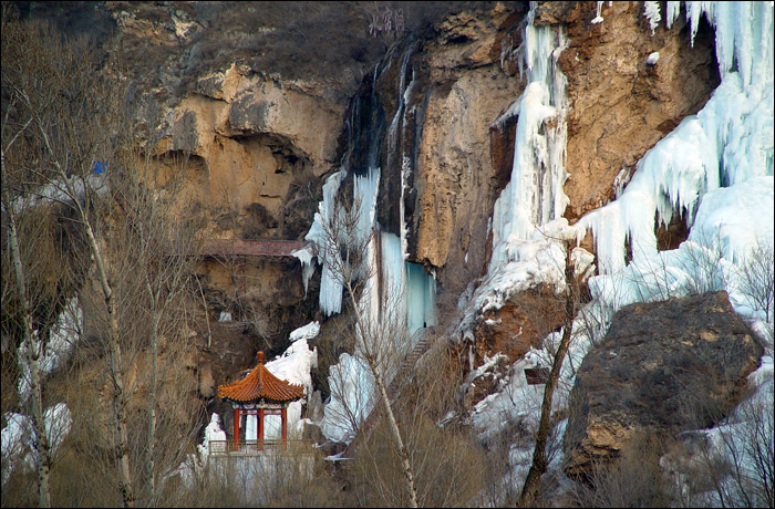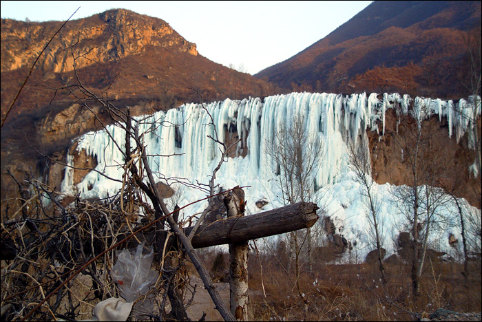 重新登车继续前行,不经意间突然在路边看到这一处冰瀑!老熊说这就是“滴水壶”,我吓了一跳!曾经在地图上看到这个名字,一直惦记专门去寻访一次,没想到今天忽然近在眼前!而且是这个样子!