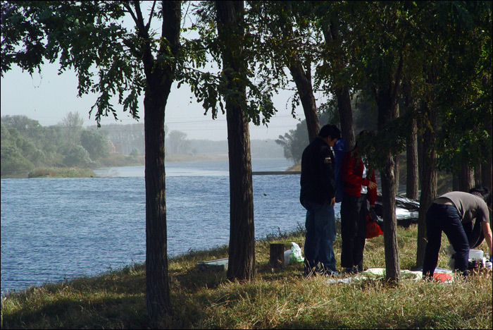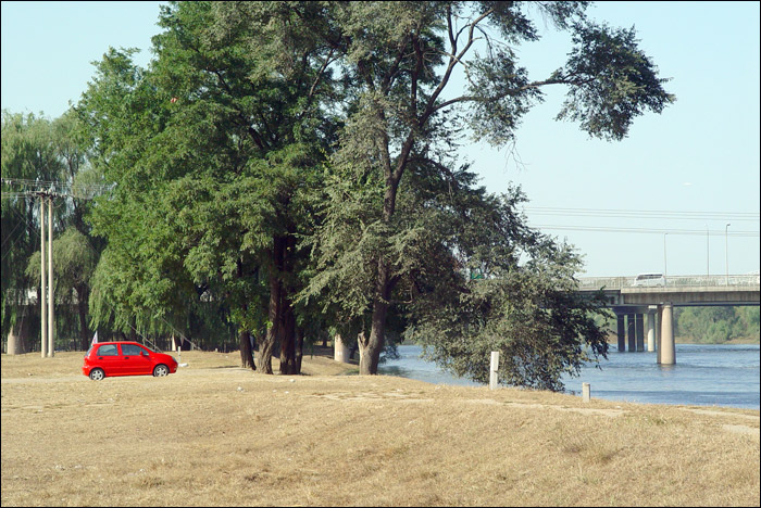 避开人群“扎堆儿”的地方,在紧贴水边的护坡上找到一处树荫。开车冲上护坡的时候,老妖精阴阳怪气地说:“你要干嘛?想把我拉到沟里去呀?” |