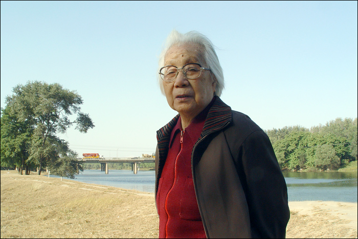 好心情还是主要的!风小的时候妈妈就下车在河边上走走。有河水,有树荫,有阳光和蓝天,当然还有风。妈妈显得很舒畅。 今天主要就是给妈妈拍照片了。妈妈86岁了。看看这个86岁的,这个不是老妖精是什么?! |