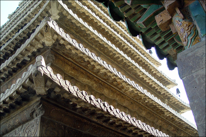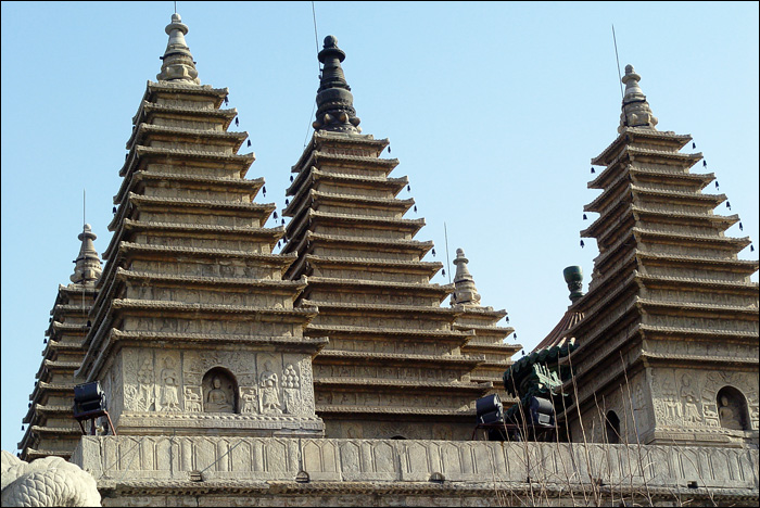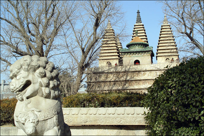 莲溪从海外归来,热烈参加我们的“百年老照片翻拍懵肘子行动”。11月29日初冬暖日蓝天没有白云,拉上她和他们家户主老高,先去了比较近的五塔寺作拍摄行动热身。 因为老熊一早有急事要办,等他,后来一起去北郊接了莲溪二位,再回西直门地铁站捞上从南郊赶过来的呼伦,时间已至正午。到了西直门也就到了老熊故居,我们已经把车开进大门,准备干脆先吃完打滷面再踏踏实实去考古摄影了,但宇鹏和他们家天使从东郊过来,这会儿电话报告已率先到达五塔寺。我们当即决定暂时放弃打滷面,掉头再出门,直奔五塔寺而去。 极近,片刻即到。但是狼狼和煤球被禁止入内。把狗狗们关进车里,心情忽然就截然不同,进去匆匆看了一圈,今天的考古和摄影实际上全都非常不敬业。 进门先拍了这张远景。选这个角度纯粹是为了回避塔后那与时俱进的广厦千万间。 “五塔”耸立在高高的金刚宝座上,前方正中是一座黄顶绿檐的小房子。这座小房子的美与不美引起争议。一争议就印象深刻了。 ![]() 关于五塔寺,事先也是一无所知。回家才上网查资料,找到比较一篇比较详细的介绍(原出处及作者不详),没时间再翻其它,此处及后文就从这同一篇中摘引了几段,后文不再注明—— 五塔寺原名“真觉寺”,创建于明代永乐年间(1403—1424年),寺内五塔约建成于明成化九年(1473年),是我国现存十余座“金刚宝座塔”之一。 据史书记载,明永乐初年,印度僧人班迪达自西域来京,向明成祖朱棣呈献了五尊金佛和印度式“佛陀伽耶塔”即金刚宝座的规式。明成祖封他为大国师,授予金印,并赐地西关(今西直门)外长河(今高梁河)北岸为之建寺,后又根据他提供的规式建成了金刚宝座塔,并重修了寺院。 清乾隆为其母做寿曾两次重修五塔寺。乾隆十六年第一次重修时,为避雍正帝“胤祯”之名讳将寺名改为“大正觉寺”。乾隆二十六年,五塔寺作为皇太后祝寿的主要场所之一又进行了全面修葺,并请来一千名喇嘛念经,各国使臣进贡寿礼,头戴红顶花翎的大臣们奔波於殿前塔后……当时热闹繁华的情景被绘制在一幅彩图中。图画再现了五塔寺当年的全貌…… 我问网友桑叶老师,那幅图哪去了,他说在故宫。我想,俺要是上故宫去查资料,那才真的象个考古的! 没想到无所不能的某大侠真把这张图找来了!实在非常珍贵—— 《釐延千梵》 关于五塔寺,桑叶给我们讲得更详尽一些。莲溪和呼伦她们都认为塔前那座小房破坏整体建筑风格,很刹风景。桑叶说: 乾隆第一次重修五塔寺那年,此地是一般祝寿场所,所以只是做了一般修缮。老娘七十那年此地是庆典的主场,因此大大翻修了一把。这次翻修把大正觉寺提高到了皇家级,天王殿、大雄宝殿、毗卢殿,以及山门和后殿都换上了老儿专用的黄琉璃瓦,牌楼、钟楼、鼓褛和其它主要配殿用了绿琉璃瓦顶或琉璃镶边儿顶。这么一折腾,金刚宝座塔不立邦一下就显得太素,于是在上面加了那各位在今天看起来很不顺眼的攒尖顶小房儿。当时要是没这小房儿就严重地视觉中外冲突,看起来很不顺眼;现在其它建筑都毁了,只剩下了这被改造过的金刚宝座塔,就又不顺眼了。此次大修功不可没,塔形的所谓汉,就是这回糅进去的。 另外,网上资料的混乱也为我加深了印象。有资料提到:“金刚宝座顶部的台面上,东西各有一罩亭。罩亭为琉璃砖仿木结构,亭之南北各开一券门通台面。”我就被那“东西各有”搞晕了!实际上问过桑叶后证实,“罩亭”就是台面正中那唯一一座“小房儿”的大名儿! 老照片是从西边——塔的侧后方拍摄的。大家分析判断,当时相机位置较高,那个方向应有一座小山坡。老高证实了这个推测,小时候他来过这里,他的一个“大表哥”住在这附近,他说那时候这边确实就是一座小山坡。 于是考古就算考好了。但是没有办法“原角度拍摄”。一是因为小山坡早就没有了,二是因为五塔寺现在成了“石刻艺术博物馆”,塔座两旁立起一些高大的石碑等等,遮挡视线。反正老熊已经拍过这一处,我们今天再来,也就比划一下罢了。 ![]() |