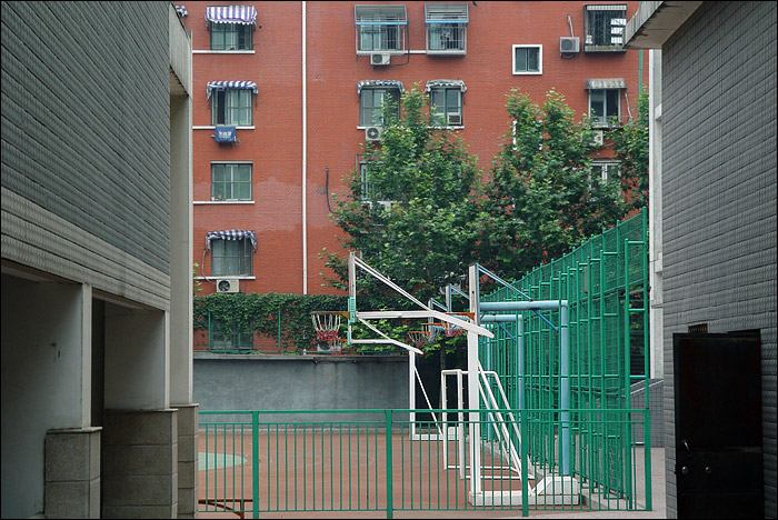 胡同靠南一点还有一道窄小的旁门,从那里也能看到操场。拍这张照片的时候我在心里诅咒着对面的红楼。那边原先没有楼,记忆中的操场比这个大得多,一眼望去可以看到蓝天白云,清晨的操场上应该是霞光万道……不过今天阴天,阴得厉害,快下雨了,反正也没有什么蓝天白云,就算了。 后来赶上下课时间,有一些孩子出来打球,但我没拍他们。他们跟我们已经没什么关系了,何况他们已经不是“我们学校”的。 |