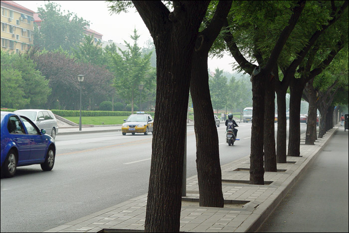 | 我们学校的大体位置是在北河沿大街,但学校的大门并不临街,要从北边的“银闸胡同”或南边的“骑河楼街”走进去,夹在它们中间的那条南北走向的小巷子就是了。那条小胡同非常短小狭窄,以至于我曾经(并且一直)以为它没有名字,今天查了地图才知道,它叫“骑河楼北街”。 那时候上学,都是走南边的“骑河楼街”。那条街斜对着“大草厂胡同”,从那里拐个弯再穿过“富强胡同”,就到我们住的“黄图岗胡同”了。黄图岗胡同的东口开在王府井大街上,过马路斜对面就是当年的“文联大楼”,爸爸妈妈都在那里上班,我们放了学经常去他们食堂吃饭,还帮厨学雷锋……家里人都习惯把那个年代称为“黄图岗那时候”。总之,整个这一带也就是当年我们的码头了。 最近这两次回学校都是从北边过来的,从沙滩路口往南,先走北河沿大街。这一带很特别,有两条同一方向紧挨着的街道,就象两条贴得很近的平行线。两街之间过去有些土房子,现在换成绿化带了。东边的小街名叫“东皇城根胡同”,地势稍高,比这边高出大约一米。想当年这两条街都不大,灰头土脸的,现在西边这里已经被打造得很漂亮了,我没时间再去东边看看,猜想那边是不是愈加破败,因为那整条胡同都被严严实实地遮挡在绿化带后面。呵呵,这叫作“允许一部分街道先美丽起来”…… 老北京城在“内城”里面有“皇城”,皇城里面又有“紫禁城”。东西两条“皇城根胡同”大体上就是当年皇城边界的位置。我猜想眼前的绿化带,可能就是老皇城城墙遗址? |