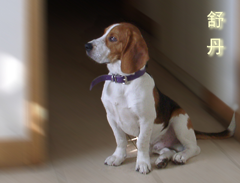 舒丹是老弟的爱犬之一,族名“比格”,印象中那好象是一种英国猎兔犬——快乐的性格,又时时流露出几分忧郁,果敢,机敏,品性优异。
