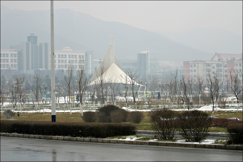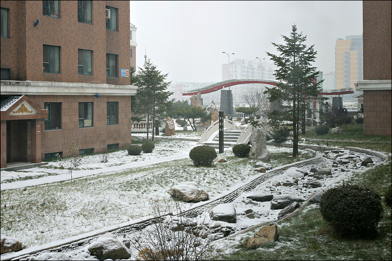 | 这两张照片是在小区门前拍的。昨天到达已是晚上,所以直到这时才好好看了看鞍山真面目。 很感谢老天爷特意为我们安排了这场小雪——没点儿雪的东北,那还叫什么东北? ![]() |