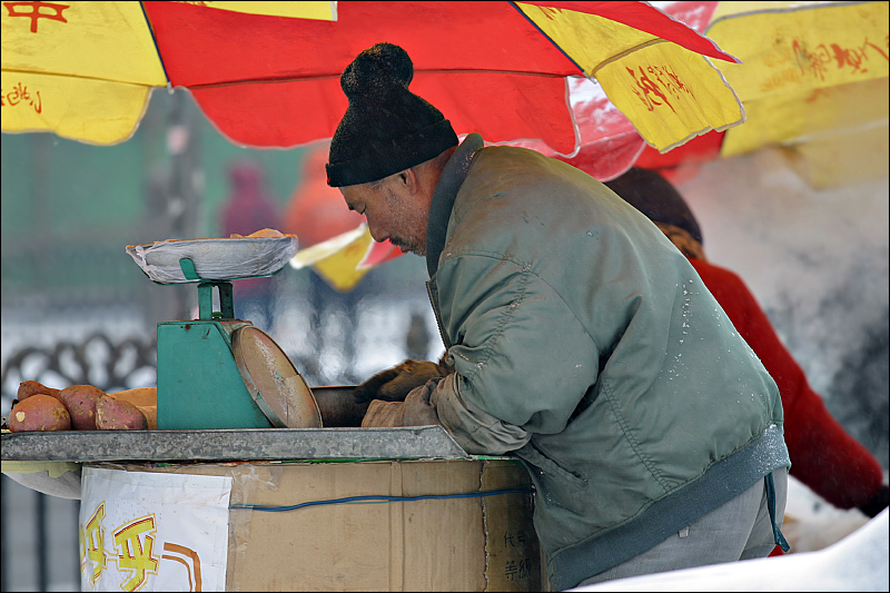| 《卖烤地瓜的老大爷》.2 老大爷一直把脑袋扎在烤炉里,我等他抬起头来等了好半天。 ![]() |