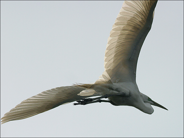 正午过后,鸟们开始活跃起来。这是从我头顶上飞过的第一只白鹭。