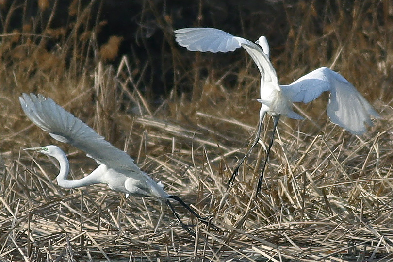 后来大半个下午白鹭和别的鹭就断断续续远远近近一直在湿地上空盘旋。
