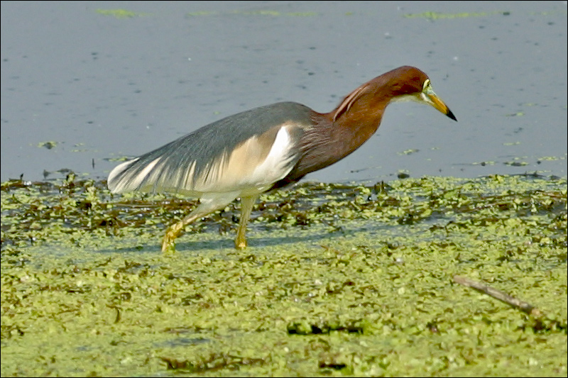 从堤岸下到水边,第一眼就看到了这只池鹭。池鹭已经拍过不少,但过去拍的池鹭都是白色与深栗色相间,总体上很单调的颜色。在图片上看到过这种彩色的池鹭,非常羡慕来着,猜想着可能是性别的区分,这种是雄性?这次查了鸟书才知道,池鹭由单色变成彩色,其实是繁殖期的变化——它们披上了一层“繁殖羽”!这大概就是“为悦己者容”吧。![]() |