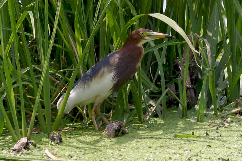 后来跟踪一只野鸭跟到苇丛后面,很意外地又从比较近的地方拍到了这个正在躲阴凉的家伙。![]() |