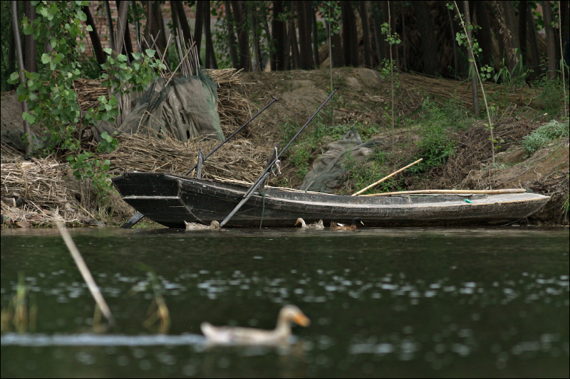 (续前) 如果不上岛,租船的一般规矩就是从小岛这里原路返回码头了。我很着急地冲着我们船工说:“我们给您加点儿钱再多玩儿一会儿行吗?”脱口而出之后,我自己第一个反应就是赶紧扭头去看LX的脸色……果然,我这话后来就成了他们的笑柄。他们说侃价还来不及呢,我这种表现相当于“不用打,自个儿就招了”。 于是我们没有“原路返回”,而是绕过小岛向着大淀深处继续行进了。下面这几张照片是从小岛旁边擦过时拍摄的:岛上浓密的树荫,扎堆儿的鸭子,还有闲泊的小船…… |