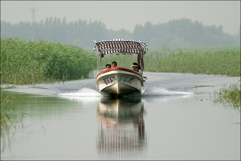船边更多的地方还是芦苇荡。这里每一丛芦苇后面都有可能是一条水道的隐蔽的入口。那些只有白洋淀人自己才能搞得清楚,毕竟是人家的码头啊。![]() |