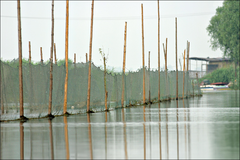 快艇时时在渔网围成的“胡同”里穿行。![]() |