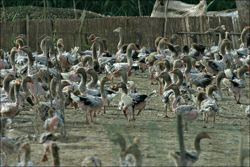 围栏里的大雁。据他们说,这些大雁尾巴上的羽毛都被拔掉了,所以不会飞。他们还说:从大雁尾巴上拔下的那些羽毛大概都让雁翎队拿走了。![]() |