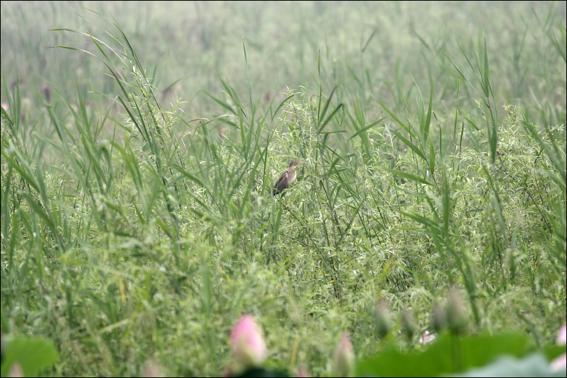 | 远处的苇丛中有小鸟探头探脑,太远了而且有遮挡,看不太清楚。 这只鸟后来立起来脖子很长,可能还是某种鹭。 ![]() |