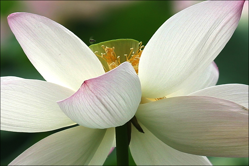 | 这张是XXB拍的,100%原大切裁,就为了能看见莲蓬上那只小蜂。还是多少有点儿“活物”比较好。 (不过估计我要是不说,谁也不会注意到那个小东西。让人家看照片还得靠“说”,真是很失败。) ![]() |