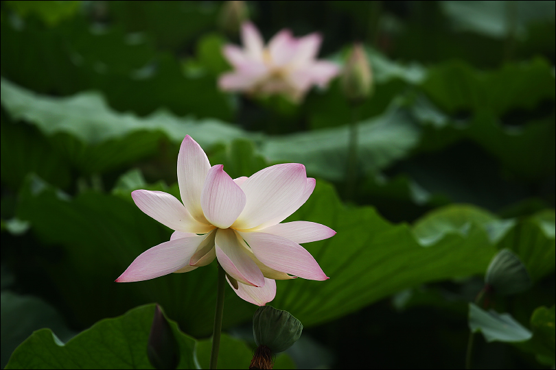 在来时的路上,看到环湖公路近旁有大片的荷花正在盛开。原路返回时就在这一带找个地方停了车,一直逗留到近午时分,老弟他们赶来会师的时候。 刚才的“高台观鸟”是在鸟岛北边,现在转到西边了。鸟岛仍在视野之内,从这里飞过的鸟仍然很多。树荫下相对凉快,设想周末如果带个小马扎来,揣上一盒烟,提上两瓶饮料(还有防蚊水),有吃有喝儿地坐在这儿慢慢打鸟兼赏荷花,也是挺小康的? 今天背了“双枪”,在这里用400头和XXB轮番“打”荷花(兼打鸟),可近可远,远近自如,甚爽!只是总体上焦距偏中长(懒得另外再换镜头),所以只有特写没有全景,没办法啦。 |