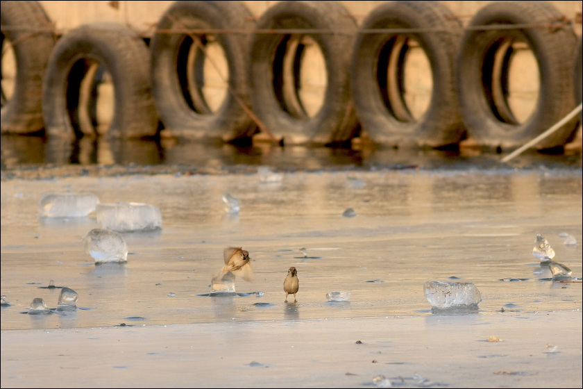 正在专心拍冰的时候,偶尔一回头,看到了这群近在眼前的绿头鸭。显然是公园里圈养的那种不会飞的鸭子,真正的“打鸟人”是决不肯拍这种非野生的鸟类的,他们认为这是奇耻大辱。我顾不了那么多,我急着体验一下什么是大家梦寐以求的“近距离、好光线”!![]() |