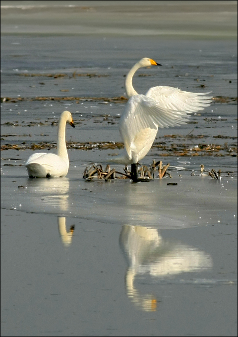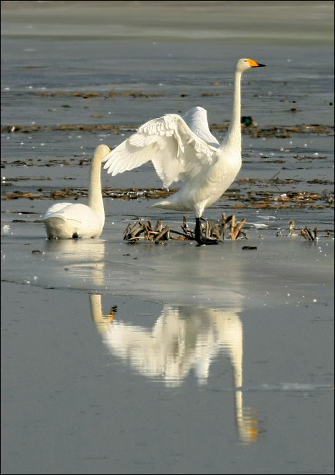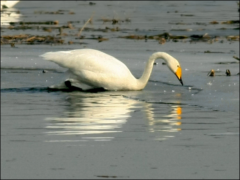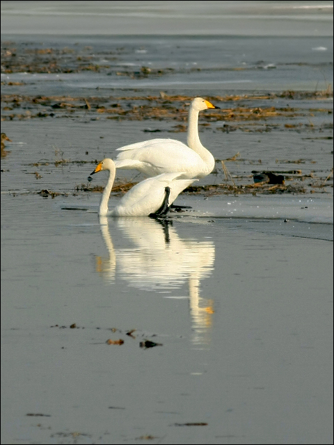 | 原本是冲着海雕来的,没想到抵达湖边,一眼最先看到的却是冰上大天鹅! 这是毫无精神准备的美丽。 ![]() |