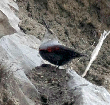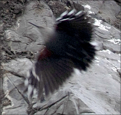 | 这批照片最初拍摄于2009年2月。当时在“鸟坛”看到网友贴出红翅旋壁雀的高清图片(摄于十渡),我想,大西山相似的自然环境很多,说不定在近郊也可以找到红翅旋壁雀?于是去试试看。 2月6号,首次出寻。二月初的天气还很冷(记得我们小时候滑冰,每年都可以滑到2月10号过后),特别是背阴的岩壁下面,寒风嗖嗖,气温就更低了。找一处看着差不多的崖壁下面停了车,把狼狼放下去方便一下,我自己遥望岩壁,仔细搜寻…… 8分钟之后,一只灰蓝色的小鸟绕过山崖快速飞来,它翅膀上那一点点红色在冬季萧瑟的大山中非常醒目。我被这奇异的缘份惊着了,压低声音赶紧喊:“狼狼上来!” |