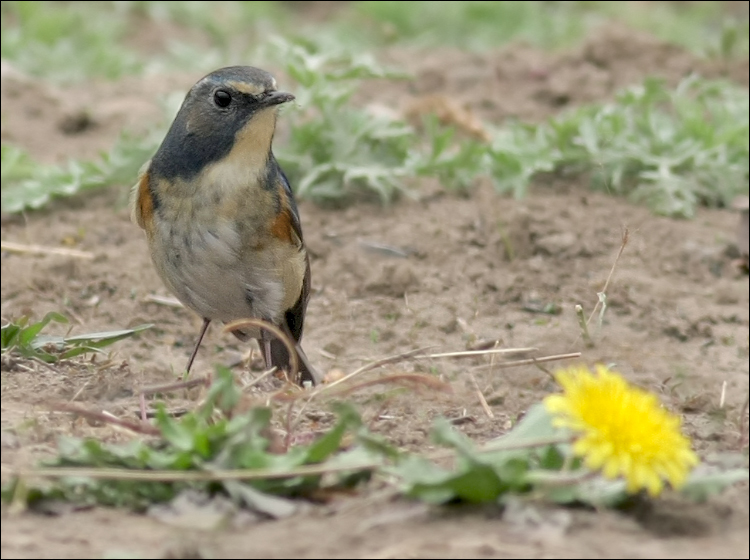 红胁蓝尾鸲,繁殖期间,男鸟在警戒。 |