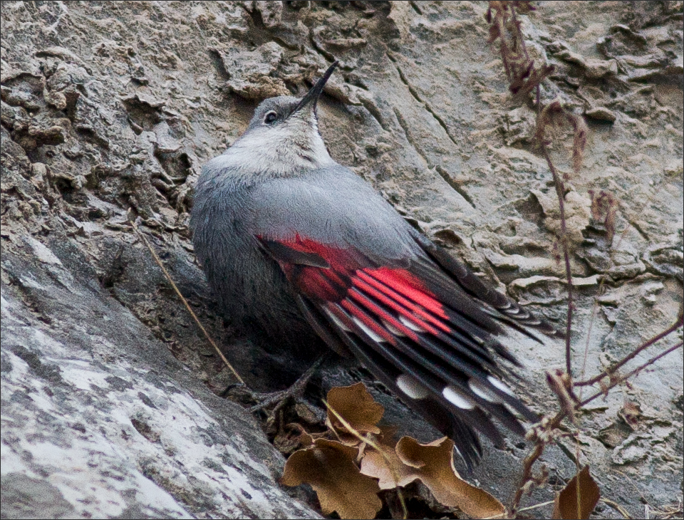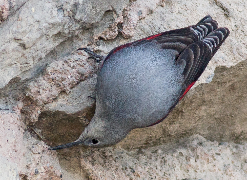红翅旋壁雀不属于任何一种“雀科”,它被归在“䴓科”里!而且在䴓科之中,“姓雀的”只有它一个。其实看它的长相和体形,与其它的䴓们确实很近似,也许当初被人类起了个雀类的名儿,只是出于某种误会?