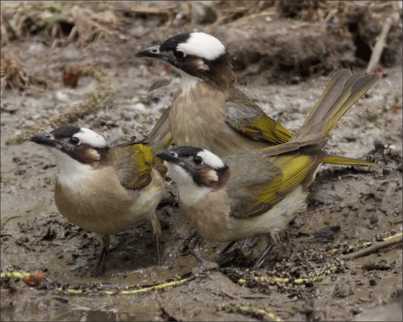 更奇迹的是:第二天又去那里看了看,路边还是那个路边,泥坑也还是那个泥坑(多少干涸了一些),而昨天叽叽喳喳满眼都是的各种各样的小鸟们却突然消声匿迹了!集体蒸发!只剩下个别几只小鹀偶尔来这里喝了点水,此外一片沉寂。只见马路上依旧车来车往,暴土扬场,一切就象从来没有发生过。甚晕!要不是昨天还留下那么多照片为证,仅一夜之隔,简直怀疑自己就是做了个梦!
