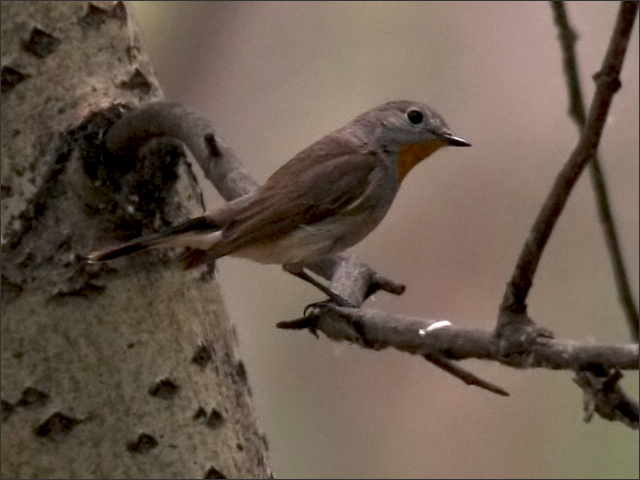在这里已经见到这么多小鸟,不知接下来还会遇到谁。我想起了红喉姬鹟,那是我非常喜欢的小东西,这个春天还没见到它……正当我这样想着的时候,一回头看见它正停在我身后的大树上琢磨我呢!
