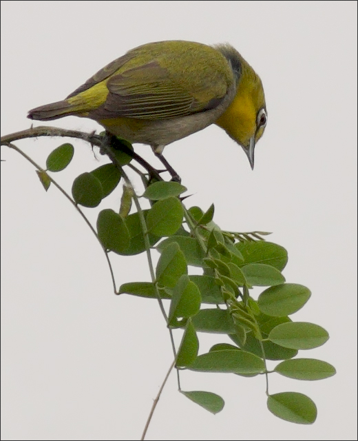 想起盼盼见到红胁绣眼鸟时,是把它们称作“金鱼鸟”的,那今天这个就是“暗绿金鱼鸟”啦!