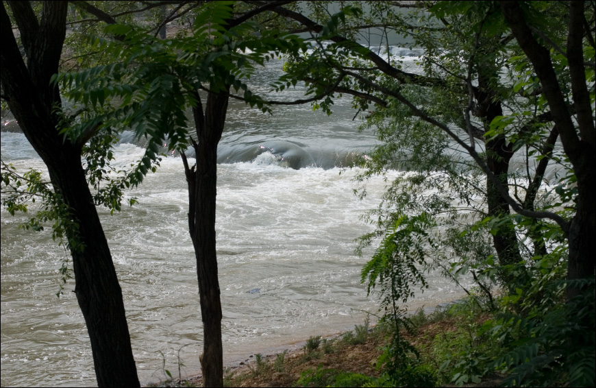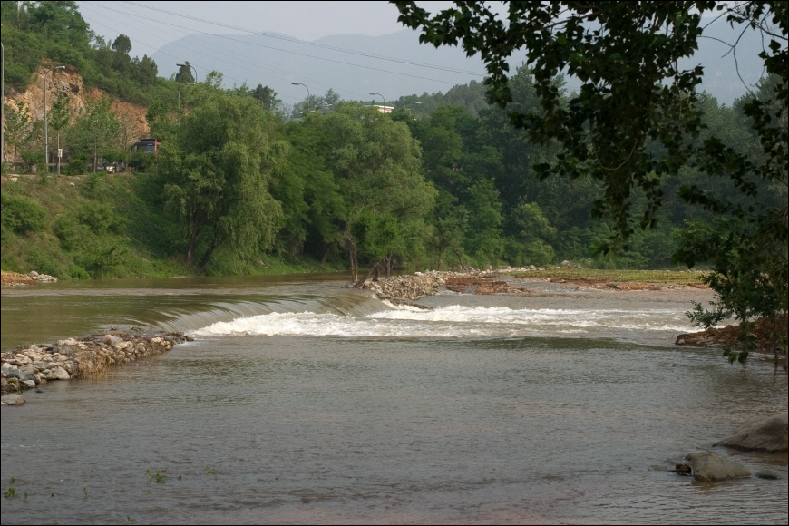 | 后来特意再去看看前次遇雨的丁家滩一带。 这里也一样是波涛滚滚,河中曾有小JL跳来跳去的那些大石头已被河水吞没。 ![]() |