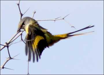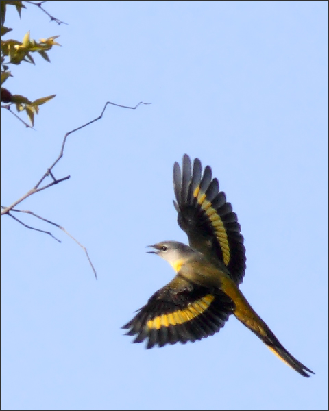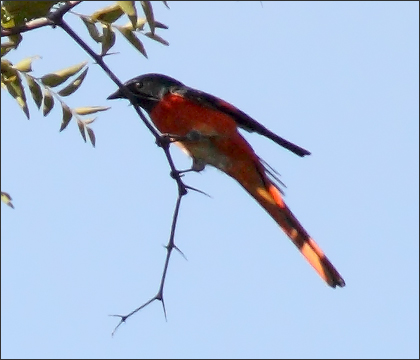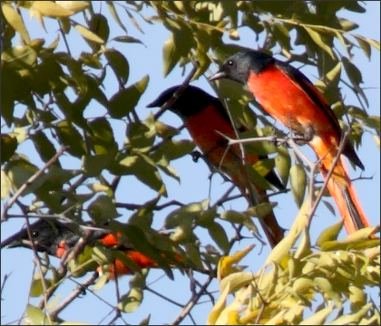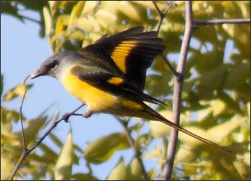 这是很重要的一只小鸟,就因为它比较“反动”我才注意到它,又因为注意到它我才看到它翅上的双叉图案——至此我才确定了这群小鸟的具体身份:它们是“长尾山椒鸟”。 |