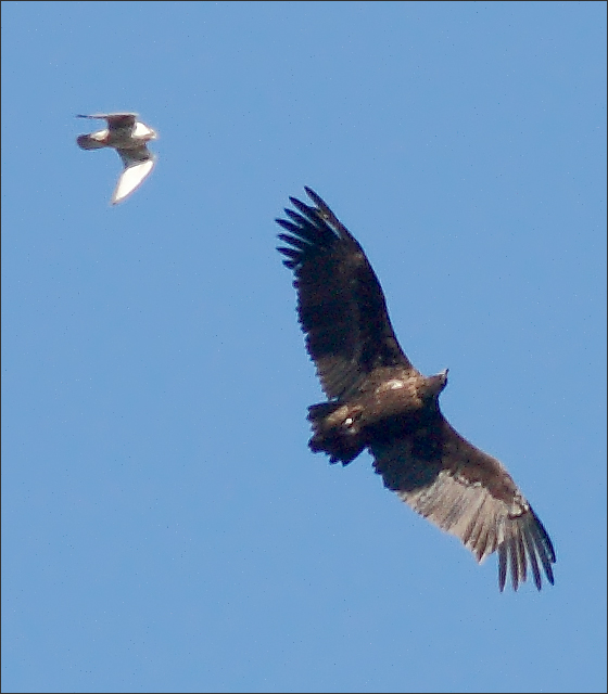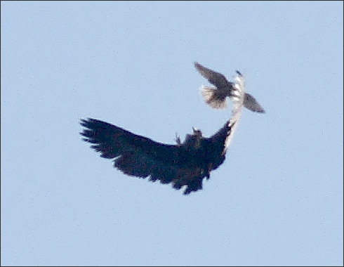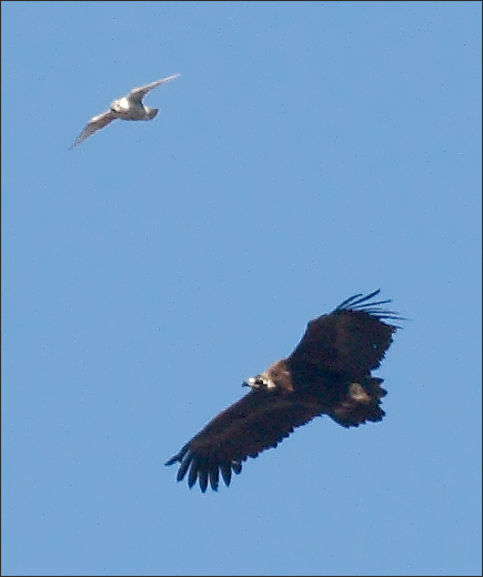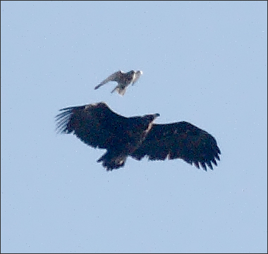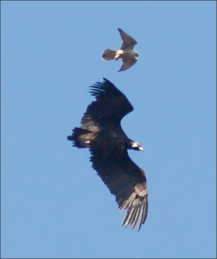 这只禿鹫大概比较老练,它这一招可能确实很厉害。只此一踢,猎隼立即就闪了,再也没有尾随挑衅。 |